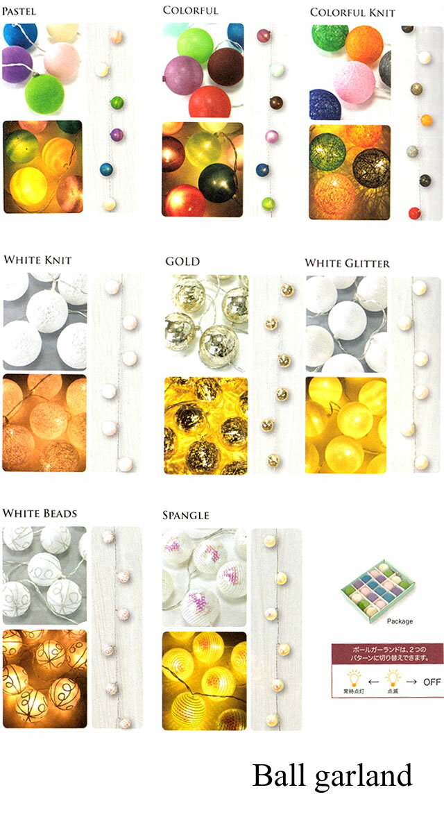 アメイジングledボールガーランド 丸くて可愛らしいLEDライトのボールガーランドはとっても軽くて電池式なので場所を気にせず好きな場所へ接地することができ、吊るしたり束ねたり自由自在♪