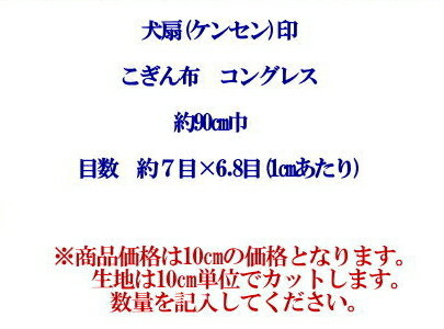 【素材】 綿100% 【サイズ】 巾90cm 【打込み目数】 1cmあたり・約7目×約6.8目 ※商品価格は10cmの価格となります。